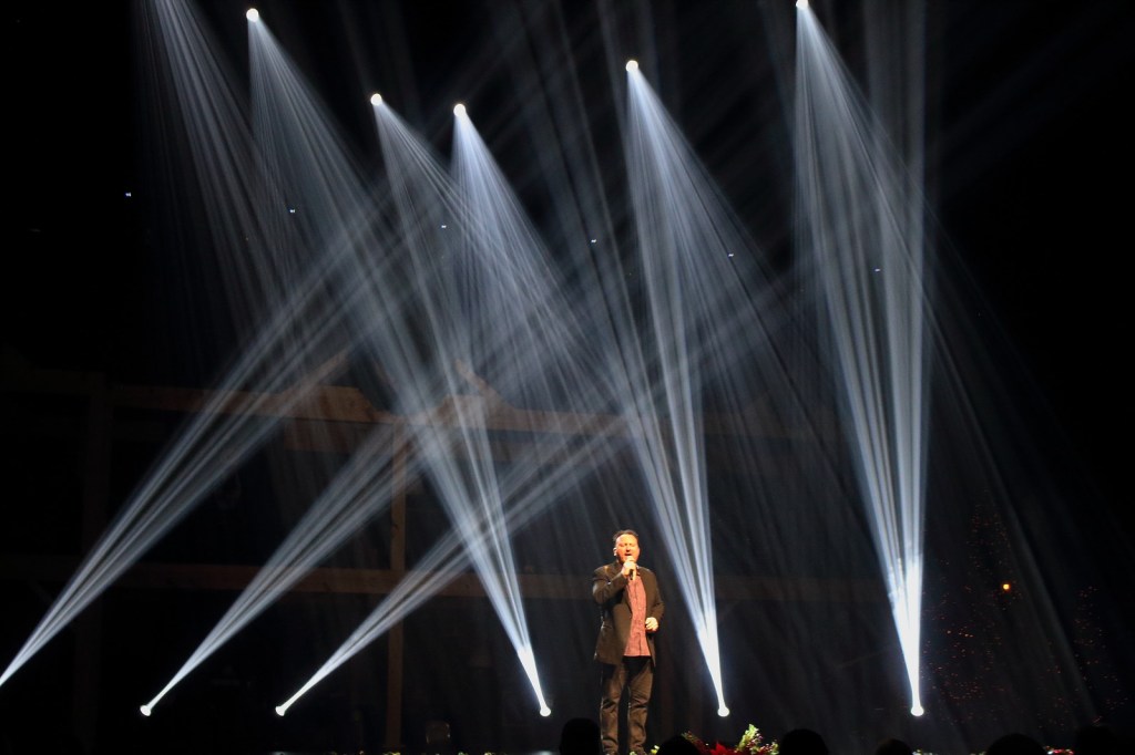 Lighting mitigates some of that by helping to say “here’s where to put your attention.” There is great value to team-led worship, so many times you will have washes on the stage [meaning a general white or white/color combo that covers the entire front of the platform]. However, there are times when you really want a tight focus. Maybe it’s on a soloist, or a dramatic speaker, etc… One of the most moving testimonies that I have ever seen was at Granger Church, as a girl told her story lit by a single spotlight in a completely dark room – you could have heard a pin drop. In the right context, less really is more…