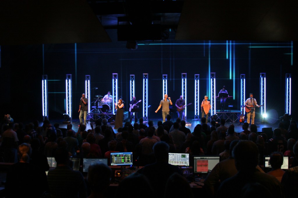 Here’s what I’d suggest instead – think longer term. Instead of trying to “fix” something mid-stream, come back to it after the fact. Every church (IMO) should have a weekend evaluation meeting on Monday or Tuesday. As I work with churches, I’m amazed by the fact that very few of them have any sort of formalized service review process – and you can tell. A 45-min meeting is usually enough – just bring together area leaders and break down what happened (and not just in the auditorium, think church-wide). I’d suggest asking each person to give one thumbs up about something that went well, and one thumbs down about something that could have gone better, with NO rebuttals or excuses allowed. Each person gives their two items, and then on to the next…